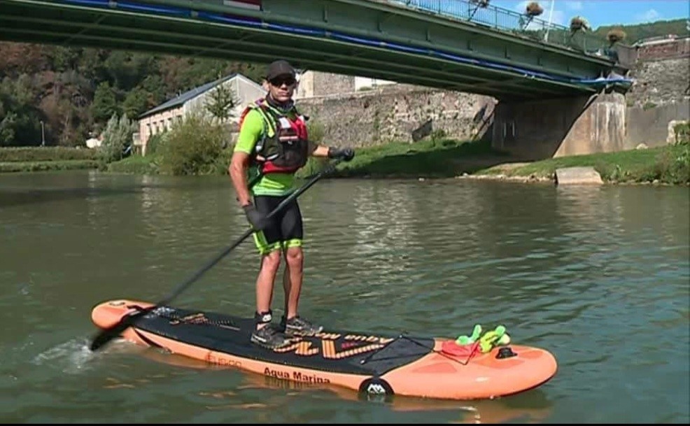Ludovic LATREILLE a traversé les Ardennes en paddle sur la Meuse entre Mouzon et Givet soit 120 kms. Il avait pour l’occasion une fantastique équipe de suiveurs du K-Raid qui lui ont permis de relever ce défi pour financer l’achat d’une Joëlette.